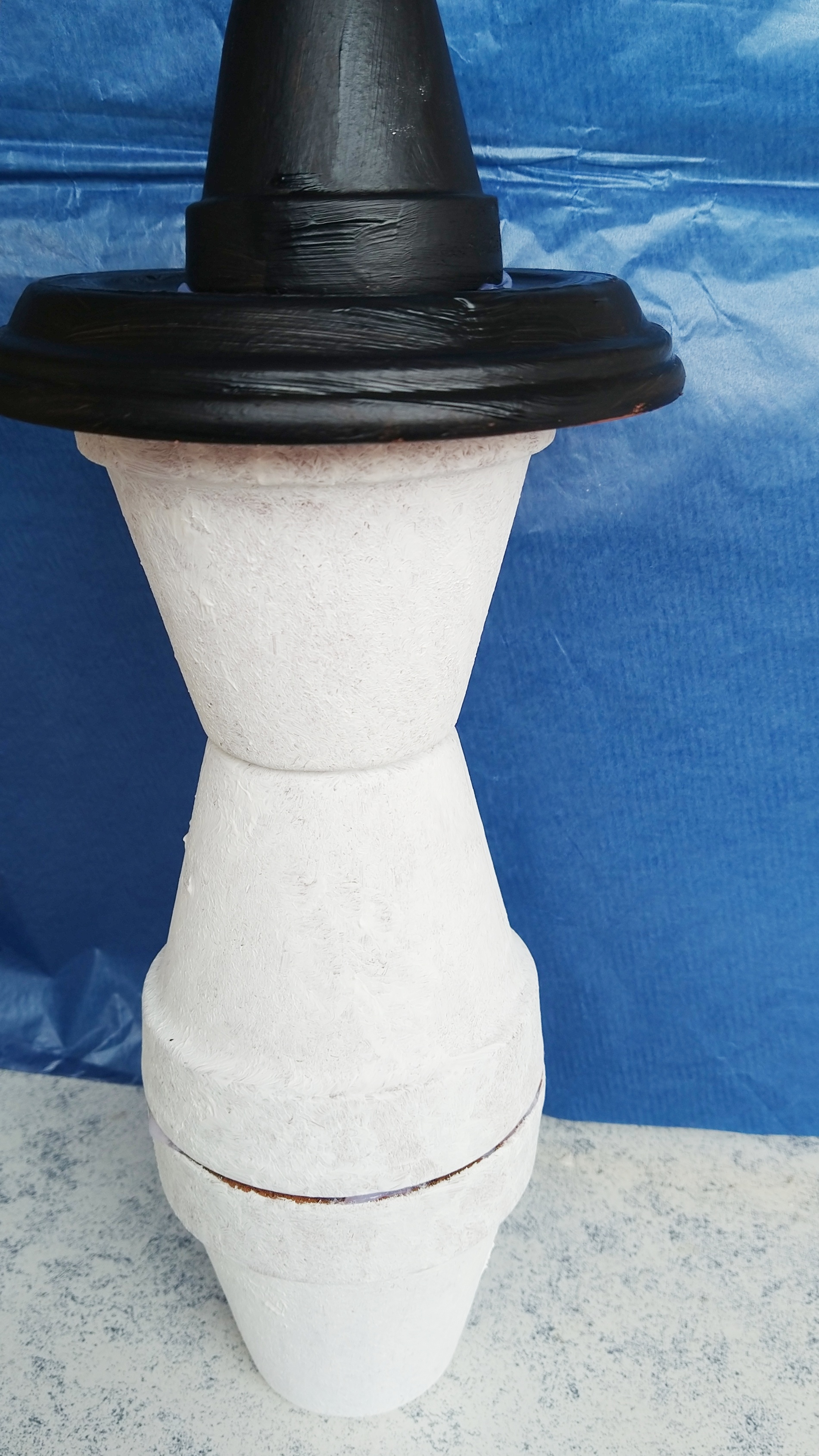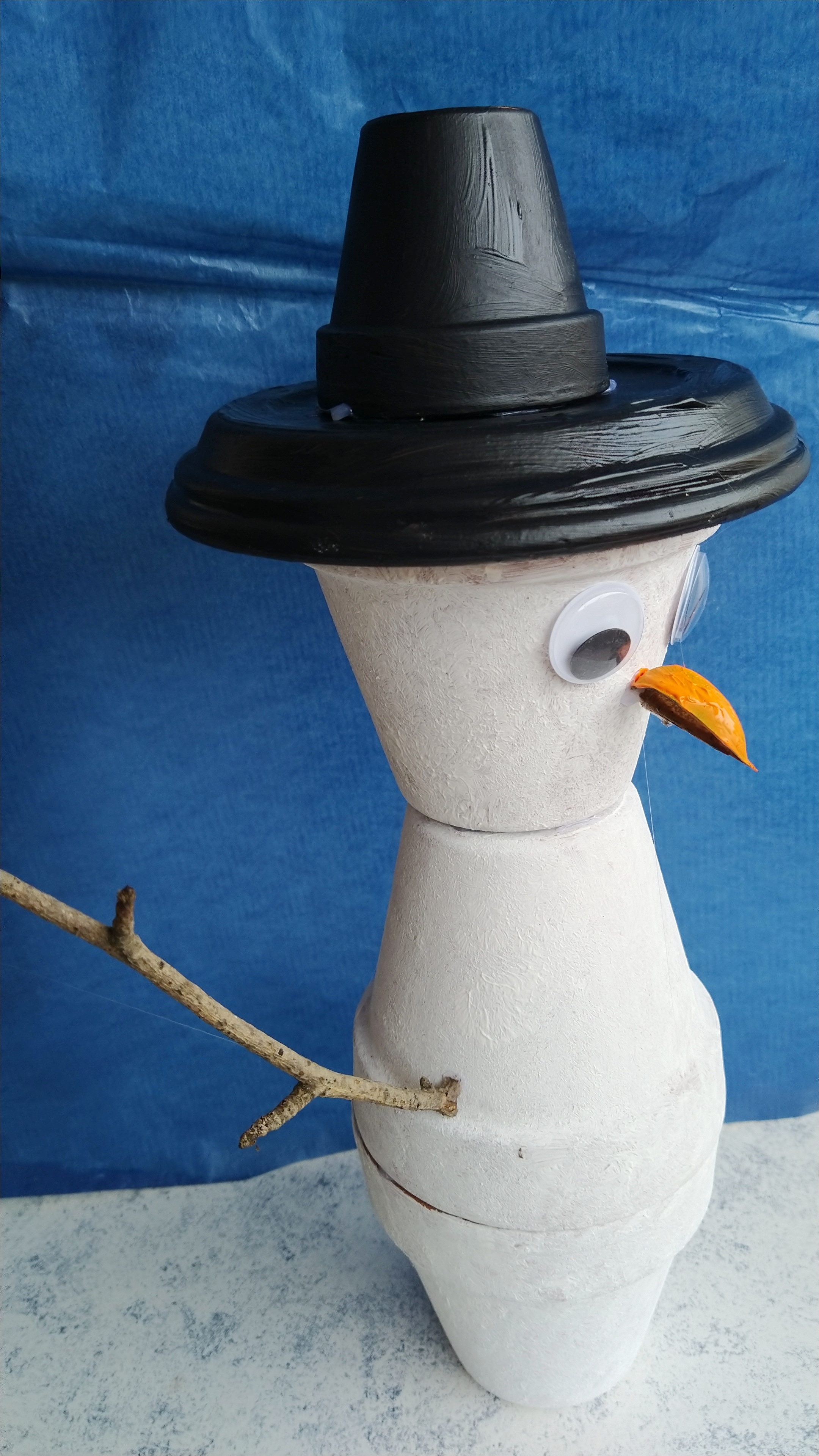 9. Fertig ist dein Schneemann aus Tontöpfen, der dich den ganzen Winter begleitet – egal, bei welchem Wetter.